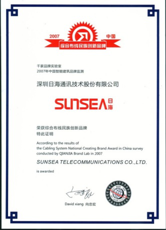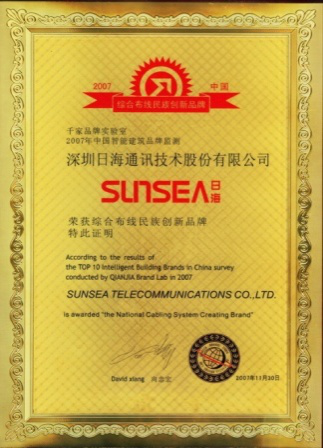 2007年11月29日~30日,日海智能综合布线受邀前往上海光大会展中心酒店,参加由千家网筹办的“2007年第八届中国国际建筑智能化峰会暨颁奖典礼”,获得了“布线民族创新品牌”特别奖项。