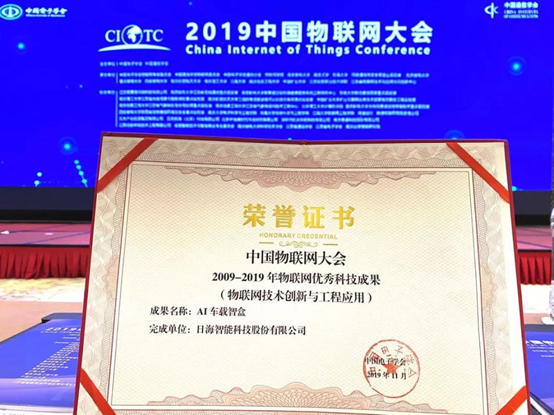 日海智能推送的“AI车载智盒”经过激烈角逐,斩获大会评选的“2009-2019物联网技术创新与工程应用优秀科技成果”(简称“物联网优秀科技成果”),充分体现了日海智能在物联网领域的强劲实力。